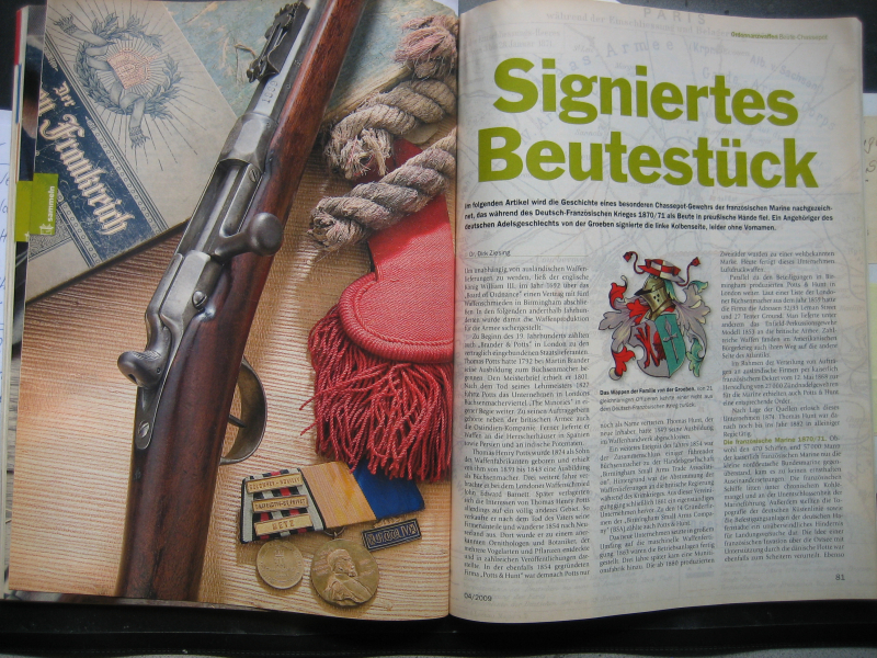 Für Sammler und Ordonnanz -/ -Gewehrschützen +++ angeboten wird ein älteres DWJ - Heft mit einem sehr interessanten Beitrag für Ordonnanz-/Gewehrschützen --Sammler; Besitzer und Liebhaber - ** Signiertes Beutestück -- Chassepot Gewehr ** ++ Der Artikel befasst sich mit der Geschichte eines besonderen Chassepot-Gewehres der französischen Marine, das während der des Deutsch-Französischen Krieges 1870/71 als Beute in preußische Hände foiel. -- Weitere Einzelheiten können Sie in dem Berichtnachlesen.+++ Es gibt noch weiterer Beiträge in diesem Heft, die von Interresse sein dürften z.B. ein Beitrag ** Mehrlader - Triplett & Scott-Waffen ** oder für 30 M1 Freunde ** Original 30 M1 Carabine und Nachbau ** +++ Das Heft ist gebraucht, befindet sich aber in einem sehr guten Zustand.+++ Der Versand erfolgt als Großbrief mit DHL (unversichert) ; die Versandkosten gelten nur für Deutschland. +++ Bieter aus dem Ausland bitte Versandkosten vor Gebot erfragen.+++ Versandrabatt möglich, sehen Sie auch meine anderen Angebote.+++ Privatverkauf, daher keine Gewährleistung, Garantie oder Rücknahme. 04-09+++ Fragen bitte mailen.