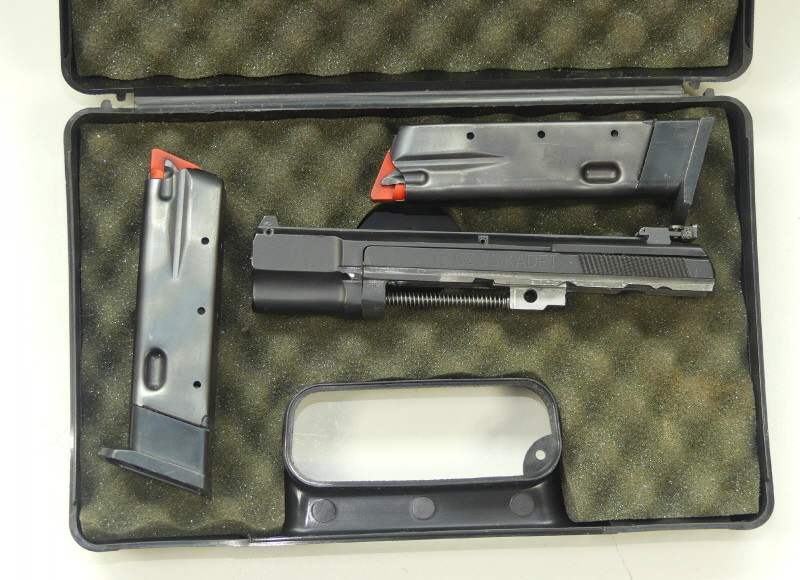 Wir bieten Ihnen hier im Kundenauftrag ein Brünner CZ Kadet Wechselsystem für die Brünner M 75 Pistolenreihe - Achtung nicht geeignet für die CZ Shadow Baureihe! Kaliber .22 lr. Sehr guter Gesamtzustand mit mit ein paar Gebrauchsspuren, wie sie eben beim gelegentlichen Gebrauch vorkommen. Das Wechselsystem wird mit insgesamt zwei Magazinen in der Originalbox geliefert. Es hat eine originale LPA Microvisierung, welches es ermöglicht, die Treffpunktlage in Höhe und Seite zu verstellen. Wenn Sie eine Brünner M 75 in Ihre WBK eingetragen haben, können Sie sich nach deutschen Waffenrecht, dieses Wechselsystem nur durch Vorlage der WBK kaufen (Wechselsystem Kaliber kleiner oder gleich benötigen keinen Voreintrag der Behörde in die grüne WBK, sondern müssen nur nach dem Erwerb nur angemeldet werden). Der Vollständigkeit halber sei noch erwähnt dass in seltenen Fällen dass Wechselsystem an das Griffstück angepasst werden muss, was aber wie gesagt relativ selten vorkommt, da es sich ja um ein original CZ Wechselsystem handelt.
