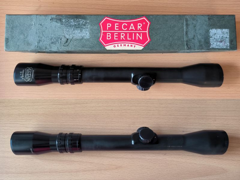 Die Marke Pecar kam aus Berlin und etablierte sich als eine geschätzte Alternative zu den großen deutschen Herstellern wie Zeiss oder Schmidt & Bender. Sie wurden vor allem auf Jagdwaffen und teilweise auf Sportgewehren montiert.