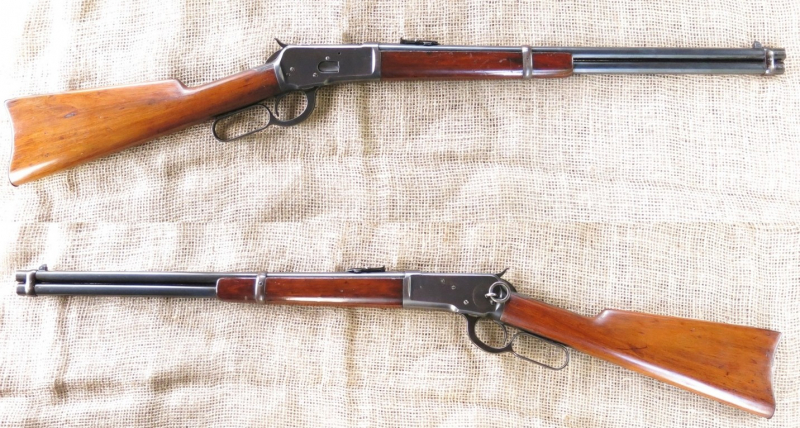 Seltener Winchester Modell 1892 Karabiner im Kaliber .44-40 aus dem Jahr 1914. Es handelt sich um einen von 20.000 während dem Ersten Weltkrieg an die Royal Navy gelieferten Winchester M 1892 Karabinern.