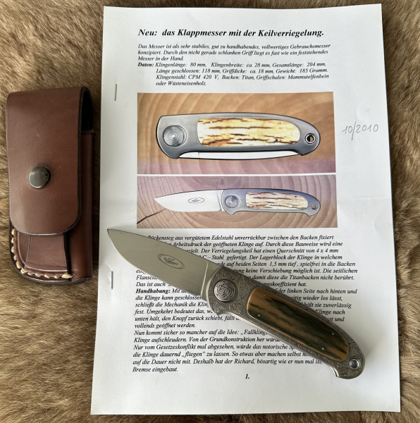 Das ist die letzte Taschenmesser Variante die Richard Hehn in ganz kleiner Stückzahl heraus gebracht hat ( zirka 10 stück) . Voll graviert wie dieses womöglich das einzige, da es damals schon fast 5000 Euro gekostet hat. Mit dabei die Original Infoblätter von Richard Hehn. Darauf findet ihr alle informationen zu diesem Traumstück. Das Messer ist in einem Neuzustand . Alles weitere entnehmt bitte den reichhaltigen Fotos.