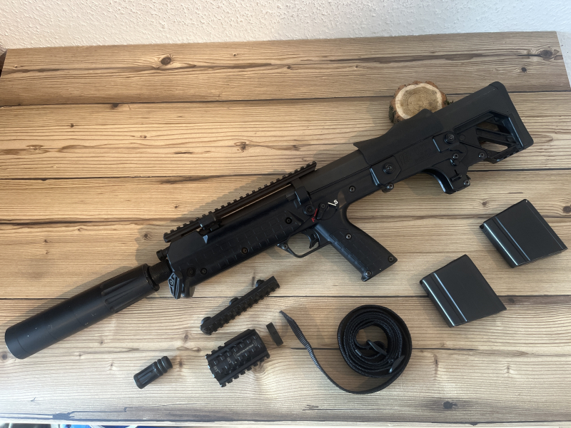 Keltec RFB 18 Kaliber .308 Win Das Keltec RFB Bullpup Selbstladegewehr ist ein Gasdrucklader im Kaliber 308Win, es besitzt einen verriegelten Kippblockverschluss und ein einstellbares Gassystem. Die Waffe ist kompatibel mit FN FAL (Metric) Magazinen und wirft die Hülsen nach vorne aus. Das RFB18 ist für beidseitige Bedienung ausgelegt und kann kompromisslos im Rechts- und Linksanschlag verwendet werden.