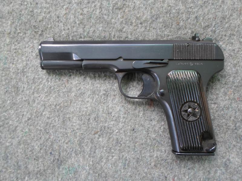 Tokarev TT 33, gültiger Beschuß, Kaliber 4 mm M 20, ursprüngliches Kaliber 7,62 x 25 Tokarev. Herstellungsjahr 1950. Ohne wesentliche Gebrauchsspuren in nahezu neuwertiger Erhaltung. Mit 2 Ladepatronen.