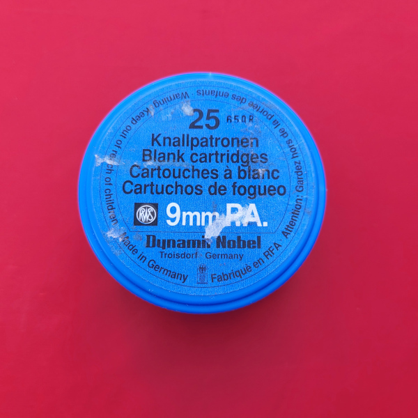 Sie bieten auf eine Blaue Dose RWS Knallpatronen im Cal. 9mm Pistole