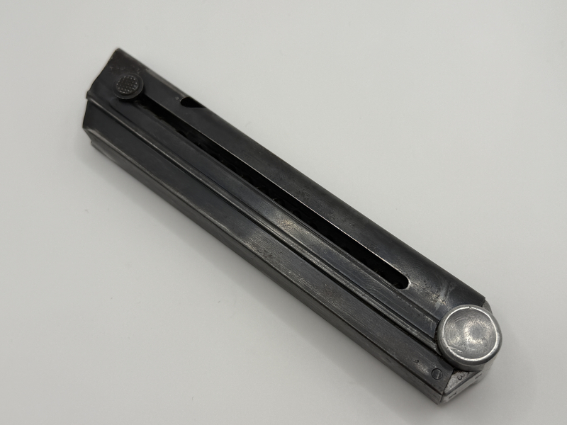 Die Pistole 08 zählt zu den bekanntesten Ordonnanzwaffen des 20. Jahrhunderts. Originale Magazine mit zeittypischen Hersteller- und Abnahmestempeln sind heute gefragte Sammlerstücke und eine wertvolle Ergänzung für jede P08-Sammlung.