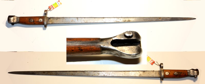Holländisches Hembrug Bajonett 1895, gestempelt "Hembrug", Klingenlänge 48,4 cm, Metall fleckig bis leicht porig, ohne Scheide