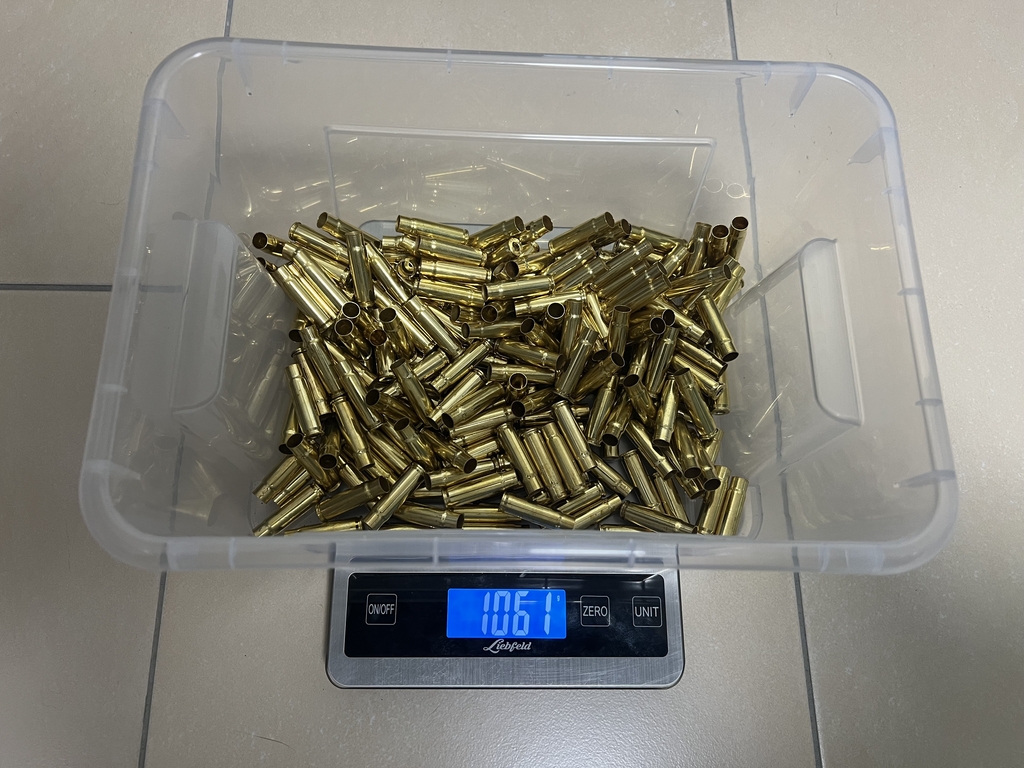 Die Hülsen wurden auf ca. 34,4mm getrimmt und gereinigt und sind direkt bereit zum Laden.