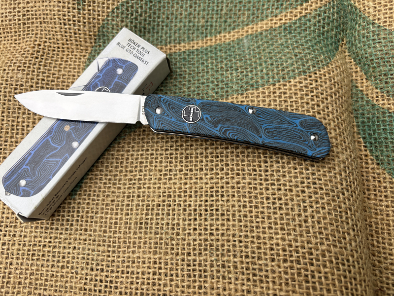 Klar in der Vision und Quelle für Inspiration: Diese geheimnisvolle Variante des beliebten Böker Plus Tech Tool wartet mit blau-schwarzen G10 Griffschalen in einem umwerfenden Damast Muster auf. Farbe und Maserung sind dabei Wegbereiter für den modernen Zeitgeist, für den das Slipjoint-Messer steht. Die Klinge aus Sandvik 12C27 mit einer Härte von 58-60 HRC wird klassisch per Nagelhau geöffnet und verriegelt nicht. Edelstahlplatinen wie auch die verschraubte Konstruktion sorgen für die nötige Stabilität, während der Glasbrecher in Notsituationen ein unverzichtbarer Helfer ist. Mit umsetzbarem Deep-Carry-Clip (Tip-Up/Tip-Down).