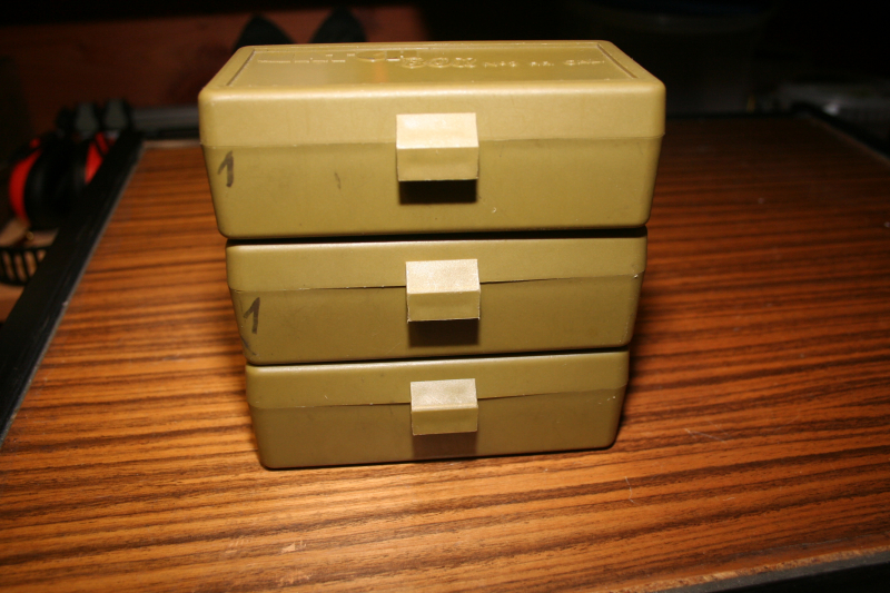 3 Stück Kunststoff-Munitionsboxen, Boxen fassen jeweils 50 Patronen, gebraucht, für Kaliber .45 ACP
