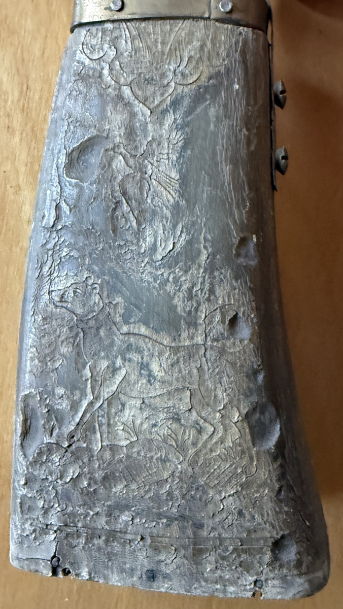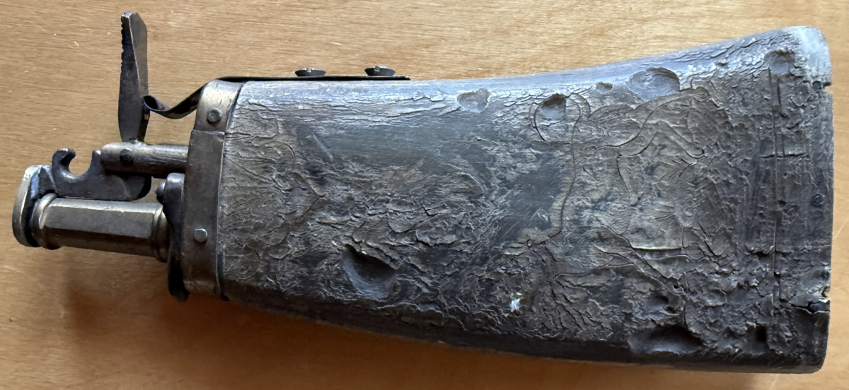 sehr alte Zündkrautflasche, Pulverflasche, Pulverhorn