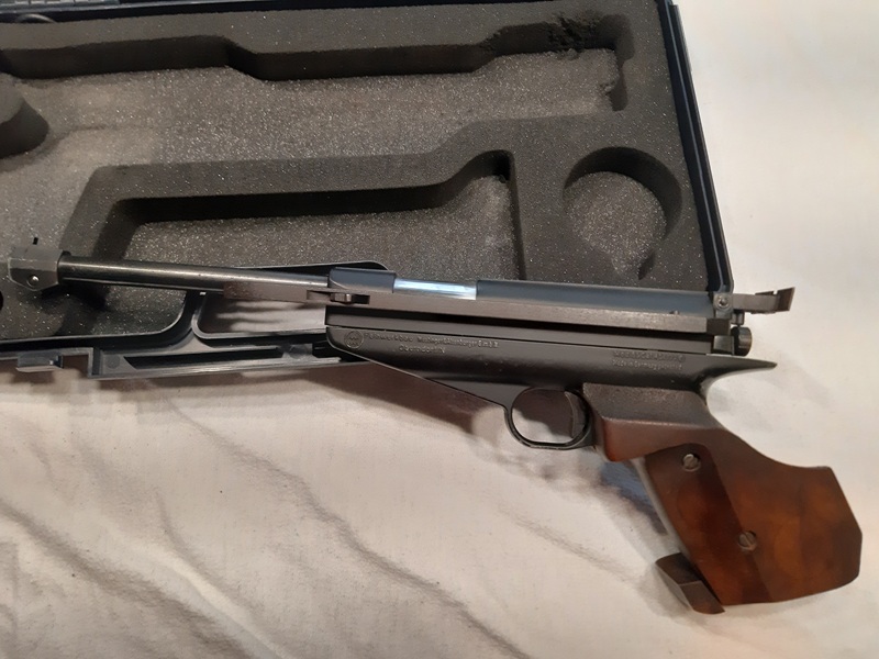 Durch Zusammenlegung zweier Vereine und Mitgliederschwund sind eine ganze Reihe Matchwaffen überflüssig. Darum hat unser Verein hat den Waffenschrank weiter geöffnet und die Gewehre und Pistolen der Kameraden, die den Verein verlassen haben nun zur weiteren Nutzung freigegeben. Zum Verkauf steht unter anderem eine gebrauchtes Matchluftpistole Feinwerkbau 65, Seitenspanner. Mit der Waffe wurde bis kürzlich regelmäßig geschossen und bei Wettkämpfen eingesetzt. Der Griff, Größe M-L ist für Rechtshänder. Auf dem Schaft waren einige Abnahmeaufklebern platziert, diese habe ich so gut es ging entfernt und den Griff neu geölt. Es ist möglich das bei Lichteinfall in einem bestimmten Winkel noch Schatten zu sehen sind. Die Mechanik der Visierverstellung funktioniert einwandfrei. Der Systemschieber und Lauf innen sind blank, an Lauf außen, Spannhebel und Visierblatt befindet sich Flugrost. Die Lackierung des Systemträgers ist schadhaft. Die Pistole ist optisch vielleicht nicht der Renner, sie funktioniert aber tadellos. Der Versand der Waffe erfolgt nach Vorlage des Altersnachweises. Der Versand kostet auf Grund der sehr aufwändigen und sicheren Verpackung 15,00 Euro, in ein EU-Land 25,00 Euro. Der abgebildete Walther-Koffer ist nicht Bestandteil der Auktion, kann aber gegen Zahlung von 10,00 Euro mit erworben werden, die Versandkosten verändern sich nicht. Allerdings müsste die Schaumeinlage der Pistole angepasst werden. Fragen bitte rechtzeitig vor Auktionsende per Mail stellen, Besichtigung und Abholung sind nach vorheriger Absprache möglich. Viel Erfolg beim Bieten.