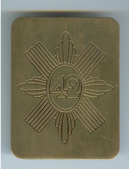 Handgefertigte Brustplatte - 42 R.H.R. Black Watch - Eigenprodukt des Schuhnagels - Massiv Messing - H= 8 - B= 6 cm - Befestigungszapfen und Haken - Neu - Einzelstück - Bestandsauflösung da der Schuhnagel.de schließt