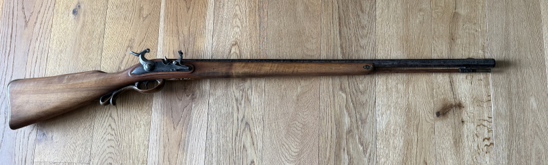 Wunderschöne Flinte mit Lauf Damaszener Art. Es handelt sich um ein Gewehr, das seinesgleichen sucht. Abzug ist stramm und rastet zweimal.Es handelt sich bei der Waffe um eine gute Sammleranfertigung unter Verwendung alter Teile. Neuer Piston mit Sicherung. Ob die Waffe schußfähig ist, kann nicht gesagt werden, da nicht mit ihr geschossen wurde. Es wird aber stark vermutet.