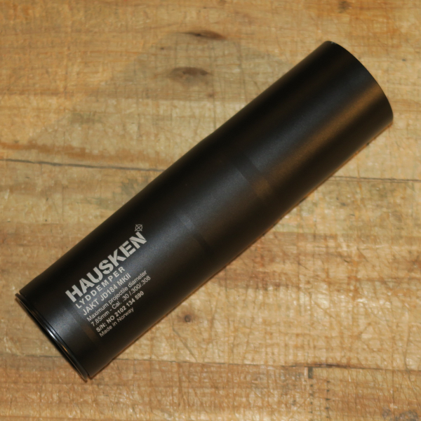 Angeboten wird ein original Hausken JD184 XTRM Schalldämpfer im Kal. 30 (passt 308 Win, 30-06 etc.) und mit M15x1 Gewinde.