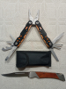 Biete für Hobby ein Multitool mit Tragehülle und ein Taschenmesser an. Das Taschenmesser ist im aufgeklapptem Zustand 23,5 cm lang.