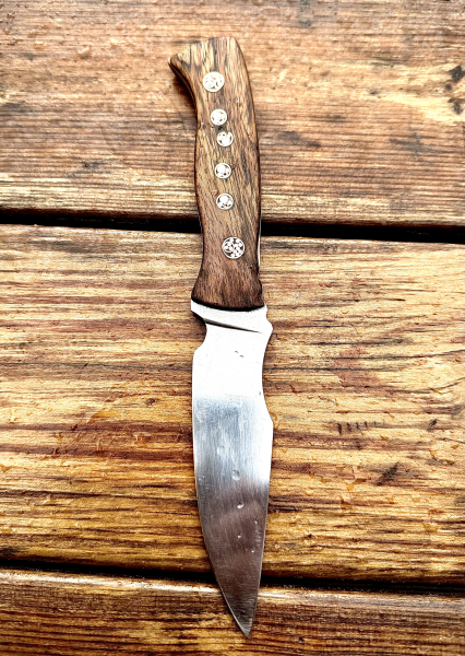 Der Griff aus edlem Ovengol-Holz verleiht dem Messer nicht nur eine warme, natürliche Optik, sondern sorgt auch für eine angenehme Haptik und sicheren Halt in jeder Situation. Jedes Stück Holz ist einzigartig in Maserung und Farbe – genau wie dein Messer.