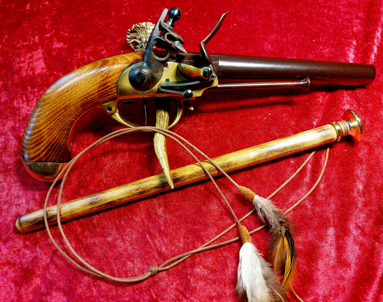 -natürlich mit Flint- hat einen guten Funken ! Es ist ein wirklich sehr dekoratives Stück. Zur Auktion gehört ein Holzladestock mit Messinggriff.