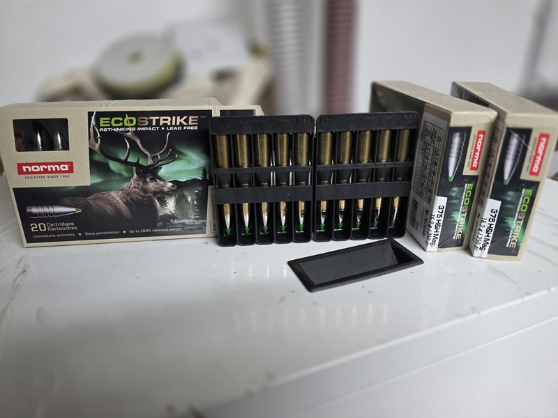 zum Verkauf kommen 60 Schuss Norma Ecostrike 16,2g/250grs. im Kaliber .375 H&H Mag. einer Losnummer. Eine Schachtel wurde zum bestaunen geöffnet, die Waffe kam nie zum Einsatz, dementsprechend kann die Munition nun ihren Zweck bei jemand anderem erfüllen. Verkauf erfolgt ausschließlich an EWB-Berechtigte ohne Garantie oder Rücknahme, für weitere Fragen stehe ich zur Verfügung.