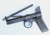 Ab 1929 begann die Produktion des kleineren Modells Junior. Laut Seriennummer wurde diese abgebildete Pistole ca. 1933 hergestellt. Die blechgeprägten Griffschalen sind ein Erkennungsmerkmal. Die Kimme ist nicht verstellbar. Der Lauf ist etwas länger als bei späteren Junior-Modellen. Die Kolbendichtung bestand noch aus Leder. Die Fertigung dieses Modells endete ca. 1938.