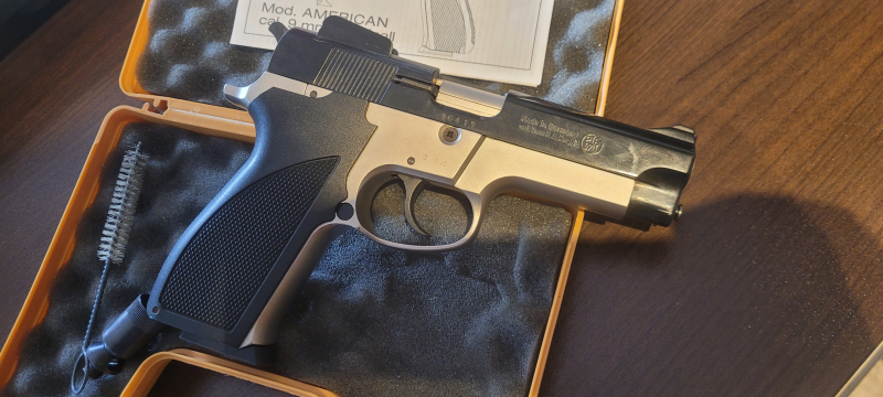 Hier meine IWG American Bicolor in 9mm PAK mit originalem Koffer, Abschussbecher, Anleitung etc.