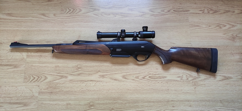 Ich verkaufe eine gebrauchte Selbstladebüchse Merkel SR 1 mit einem Drückjagdglas von Zeiss. Die Waffe befindet sich in gutem, gebrauchten Zustand und funktioniert einwandfrei, hat jedoch  Abnutzungsspuren auf der Brünierung sowie oberflächliche Kratzer auf der Waffe und dem Zielfernrohr.