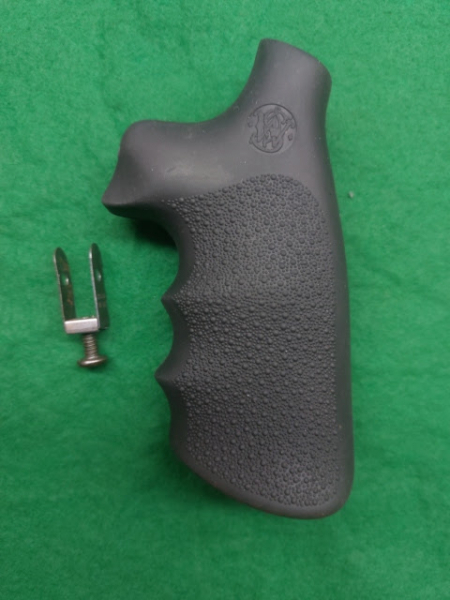 Hogue Modell "TAMER" Gummi Griff für S&W Revolver K, L, N, X, Z Rahmen mit Round Butt. Der Hogue Tamer Griff S&W Revolver findet Verwendung bei den Modellen .460 S&W Magnum und .500 S&W Magnum und ist ein einteiliger Gummigriff mit ergonomischem Design und Noppenstruktur für festen Halt, der den Rückstoß wirklich dämpft. Mit S&W Logo, inklusive eine Montagehalterung und Griffschraube. Da ich den Griff kaum genutzt habe, ist er in einem wirklich guten Zustand, siehe auch Bilder, die Teil der Artikel Beschreibung sind.