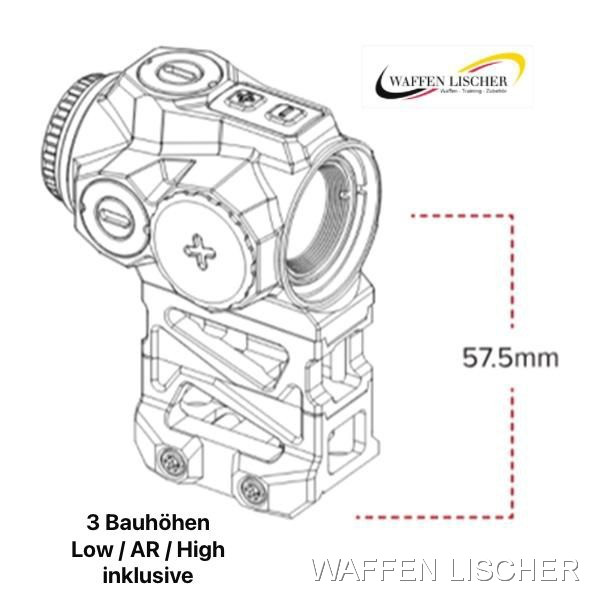 • Helligkeit: 12 Einstellungen, einschließlich 2 speziellen Nachtsichtmodi, die auf die Kompatibilität mit modernen Gen3 NV-Geräten abgestimmt sind.
