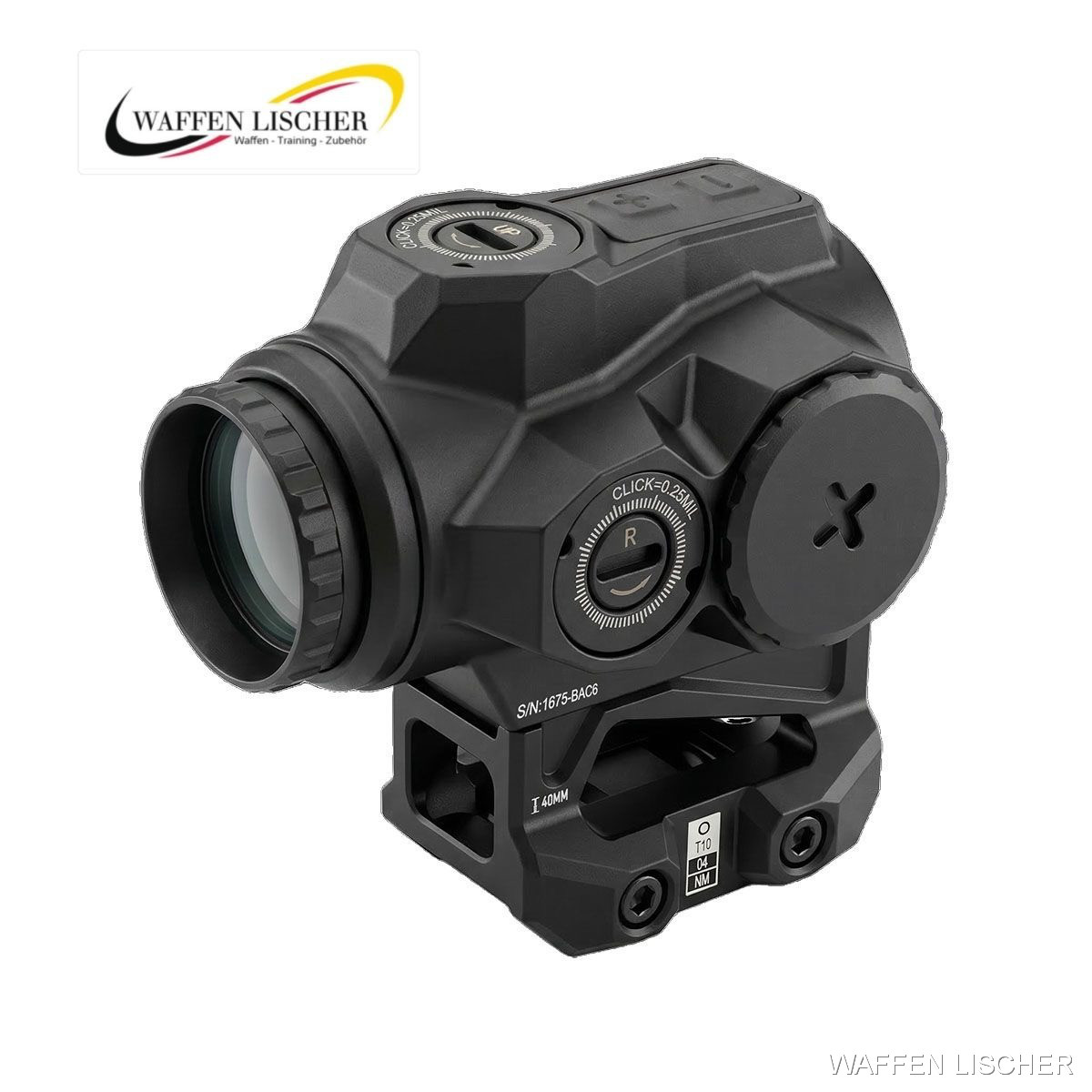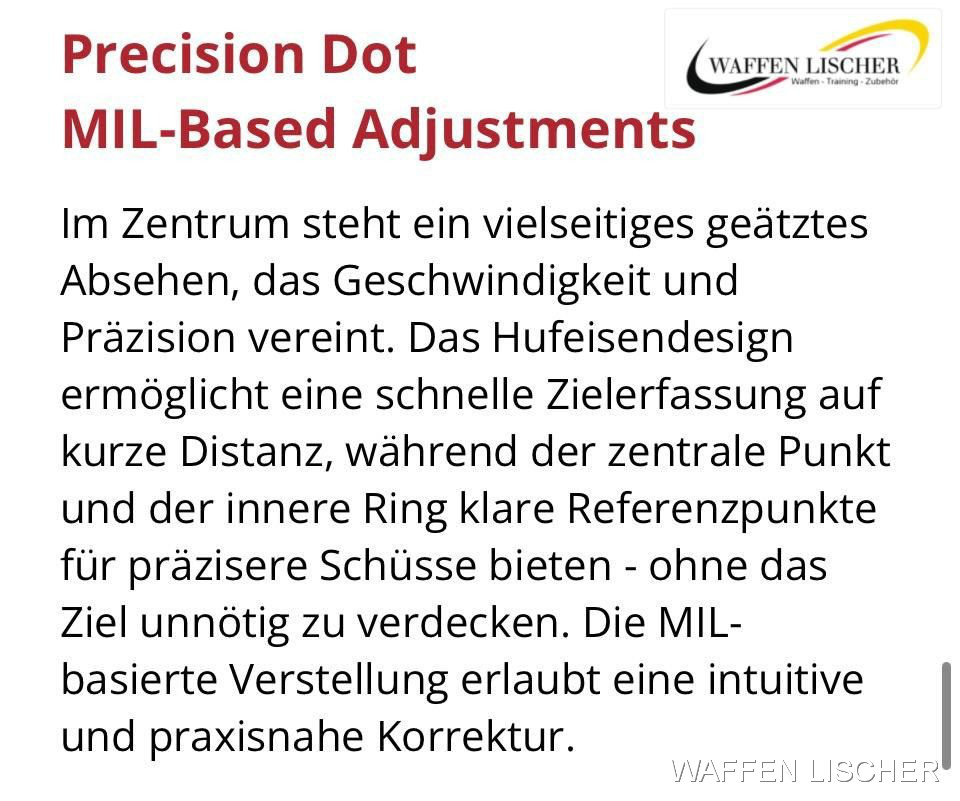 • Wind- und Höhenverstellung: Entspricht dem MIL-Standard, der in der gesamten Hybrid-Serie verwendet wird, mit 0,25 MIL Klicks und einem Gesamtverstellbereich von 15 MIL.
