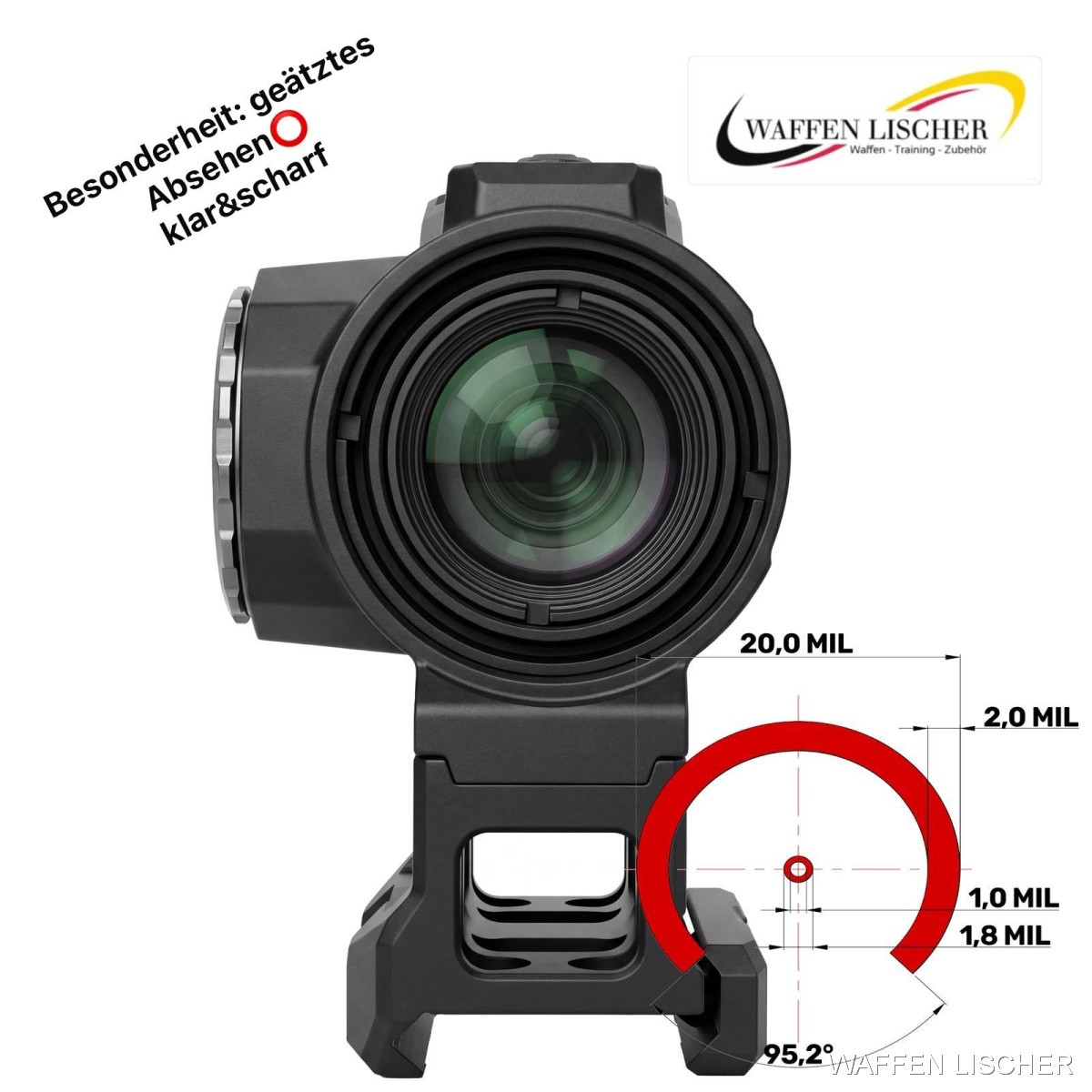Der wirkliche Vorteil zeigt sich, wenn ein Vergrößerungsobjektiv hinzugefügt wird. Unter Vergrößerung wird das Mikro-Diopter zu einem echten Diopter-Stil Referenz, die die Zielerfassung außergewöhnlich einfach und präzise macht. Im Gegensatz zu projizierten Punkten, die immer einen Teil des Ziels verdecken, bleibt der Teiwaz-Kreis unauffällig und hält das Ziel vollständig sichtbar. Schützen zentrieren das Ziel instinktiv innerhalb des Rings, eine Methode, die sich in wiederholten Benutzertests als äußerst effektiv erwiesen hat und konstant schnellere und präzisere Ergebnisse im Vergleich zu herkömmlichen Punktoptiken bei Verwendung mit Vergrößerungsobjektiven liefert.