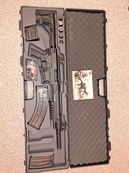 Hallo, ich verkaufe hier meine PumpFlinte im Cal. 12/76 weil ich sie einfach zu wenig nutze. Die Flinte ist in einem neuwertigen Zustand da ich sie nur eine Handvoll mal mit auf dem Stand hatte. Etwas über ein Jahr alt. Die Rechnung giebts dazu. Voll funktionsfähig. Geliefert wird alles was damals beim Kauf dazu war, also Choks, Magazine, Koffer und Wechselvisier. Alles wie aus den Bildern ersichtlich. Das schießen damit macht einen Heidenspaß und außerdem sieht die Flinte mit ihrem AR15-Style extrem geil aus. Das Auge schieß schließlich mit. :) Abgabe nur an WBK grün mit Voreintrag oder gültigem Jagdschein. Verkauf unter Ausschluß jeglicher Garantie, Gewährleistung oder Rücknahme. Macht mir einfach ein brauchbares Angebot. Warum die Bilder gedreht sind kann ich nicht sagen. Aufm Rechner sind sie gerade. :(
