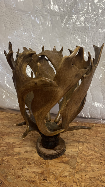 Zum Verkauf steht eine große und außergewöhnliche Geweihskulptur auf massivem Holzsockel.