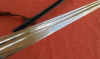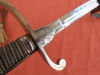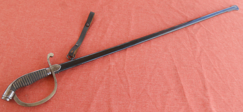 Alter Degen Pallasch Eigentumsstück beidseitig auf der Klinge Inschrift in Treue Fest.Klinge ohne Hersteller personalisiert mit Datum 23.12.1899 Namen und am Knauf Gravur Nameskürzel.Gesamtlänge mit scheid 100 cm.Klingenlänge 84 cm.,maximale Breite der Klinge 1,9 cm..Die Klinge selbst kaum rostig dafür einige nicht tief gehende kerben hauptsächlich im vorderen Bereich siehe dazu auch Detailfoto.Scheide recht ordentlich erhalten zum Ort vorne beidseitig kleine Beule.Hänger Schleppriemen aus Leder auch noch dabei.Wicklung fest Rochenhautgriff in Ordnung,sieh auch die Bilder die zum verkauf gehören.Privatverkauf keine Garantie und Rücknahme da gebrauchter Gegenstand.Versand über DHL zu 12 € innerhalb Deutschland trägt Käufer......KEIN VERSAND INS AUSLAND.
