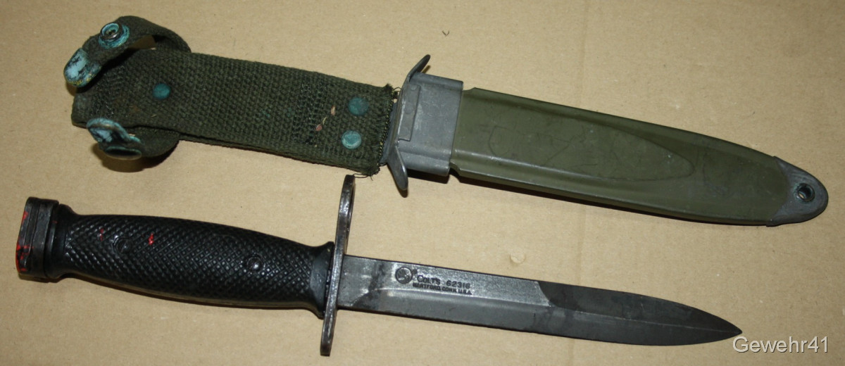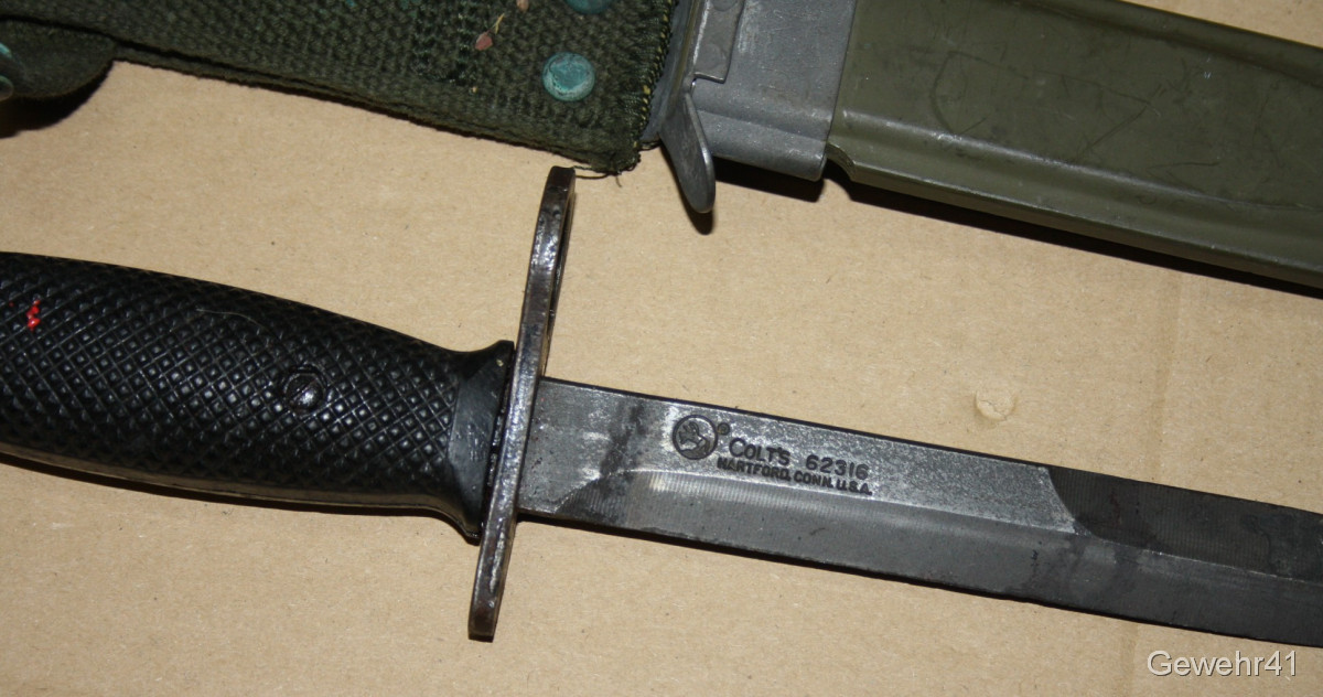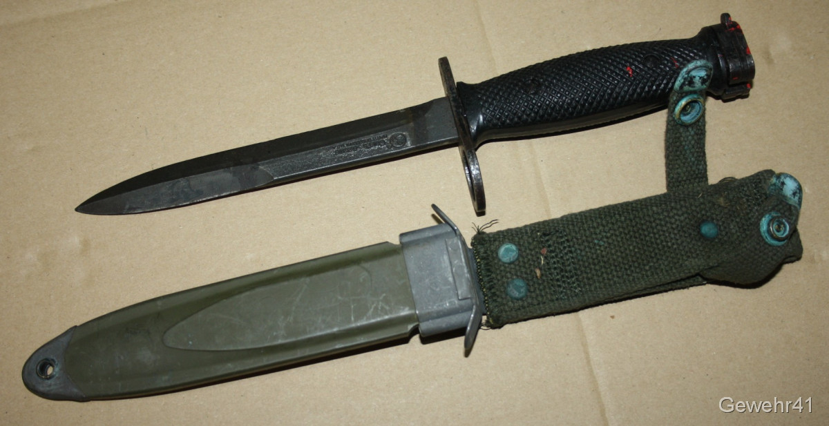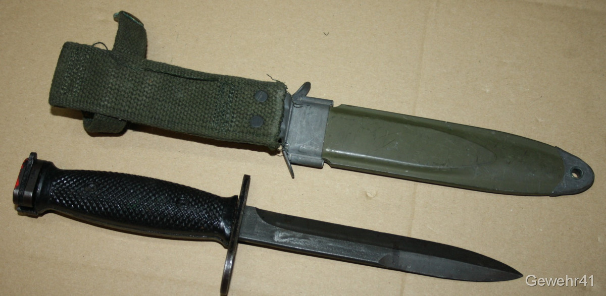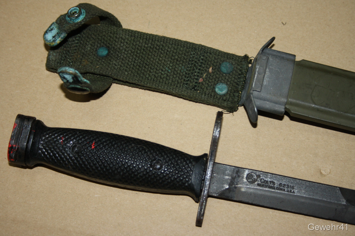 Sie bieten auf diese originale "Colt" Bajonett M7 mit dazugehöriger Scheide M8A1 für M16 Sturmgewehre. Guter Zustand.