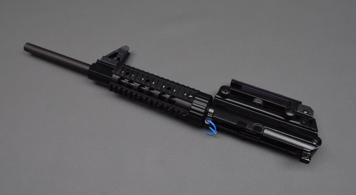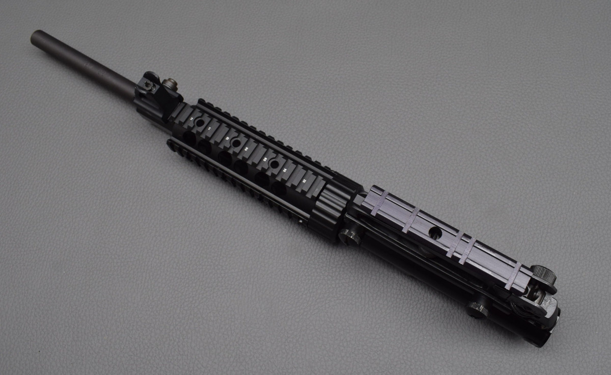 18,5 mm dicker Lauf, 150 mm langer Handschutz mit durchgehende Picatinny-Schiene für weitere Zieloptik,