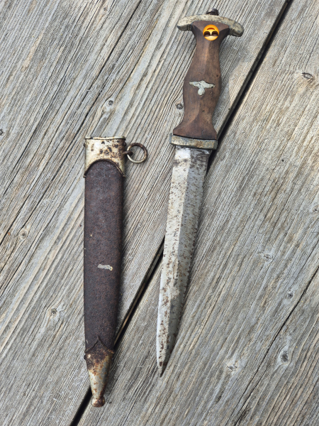 zum Verkauf steht der abgebildete SA Dolch als Teileträger oder Belegstück. Späte Ausführung RZM noch erkennbar. Devise nicht mehr vorhanden. Das SA Abzeichen ist vorhanden.
