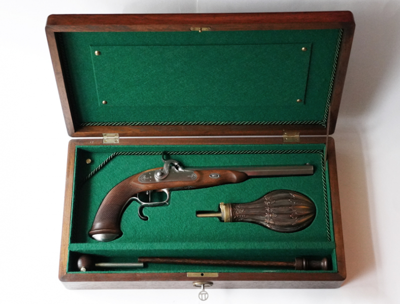 Zum Verkauf kommt hier eine Davide Pedersoli Le Page Vorderlader Pistole