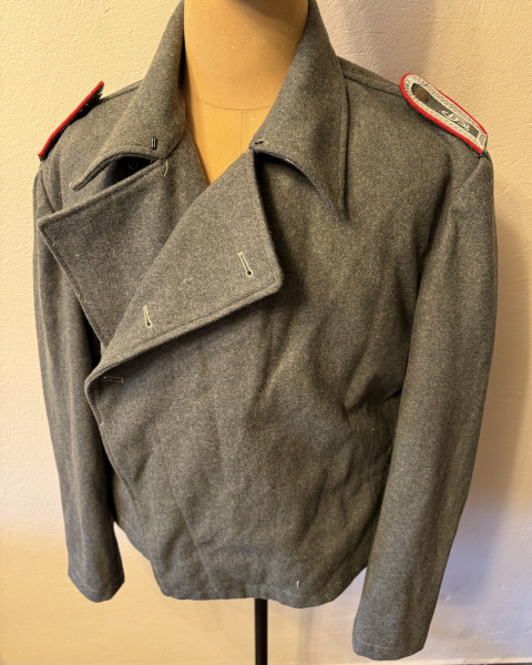 Sie bieten hier auf eine Sturmgeschützjacke Panzerjacke + Schulterstücke GD / TOP Kopie, sehr gute Verarbeitung / Größe ca. L/ guter Zustand / WH WK2 / keine weiteren Infos aus Erbmasse / Versand 8,00 EUR versichert / NICHTRAUCHERHAUSHALT / keine Garantie, kein Umtausch /