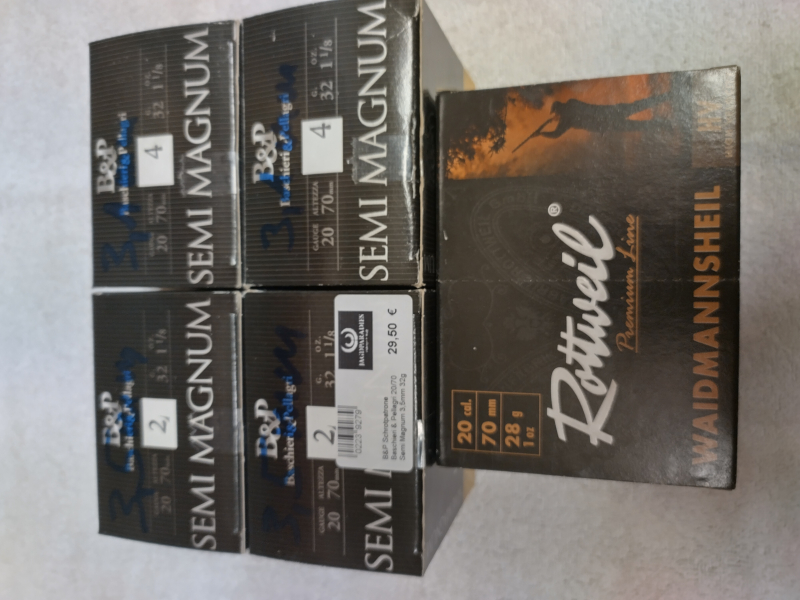 Angeboten wird ein neuwertiges Konvolut von 139 Jagdschrotpatronen Kaliber in 20/70. Neupreis 170 Euro.