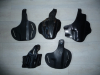 4 unbekannte Pistolenholster, Leder und Cordua, Zustand gebraucht noch gut, Hersteller nicht bekannt.