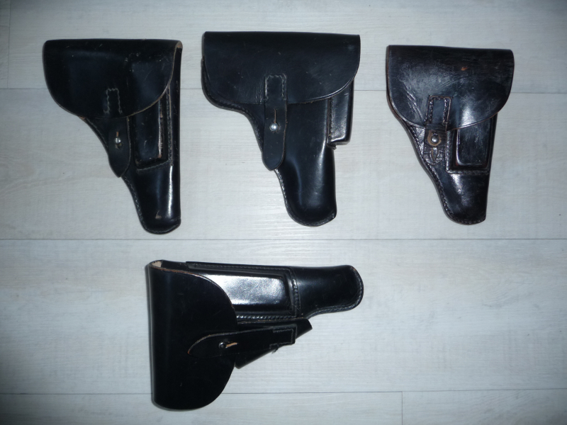 4 Gürtelholster (zivile Fertigung) für Pistole Sig Sauer P225, Zustand gebraucht, gut bis sehr gut, Hersteller Bucheimer, COP und 2x unbekannt.