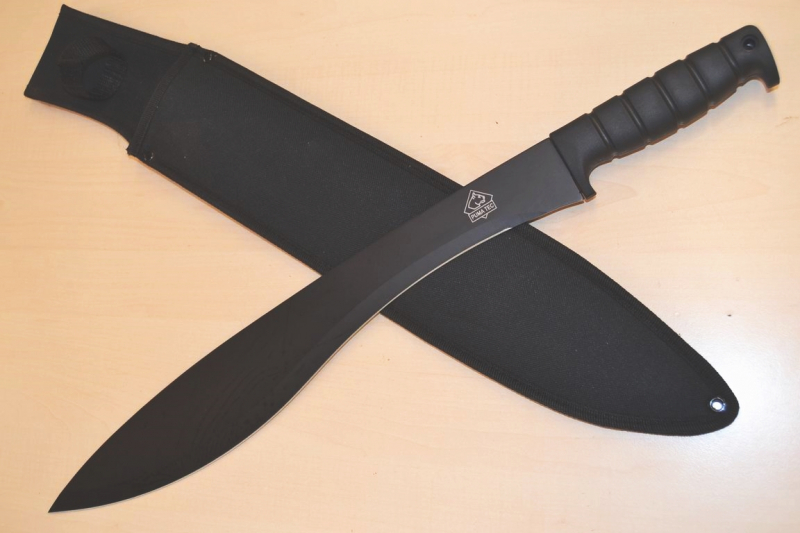 Die unbenutzte PUMA Machete hat eine an ein Kukri angelehnte Klingenergonomie, mit der viel Schwung und Kraft generiert werden kann.