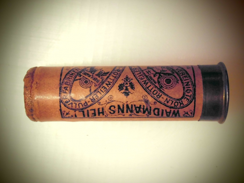 Sammlungsauflösung.Moin Sie bieten auf eine Deko Schrot Patr.mit Klapperkugel im Kal 16 Hergestelt ca.1935 Bds.VEREINIGTE KÖLN-ROTTWEILER PULVERFABRIKEN. Privatverkauf,keine Garantie,keine Rücknahme.