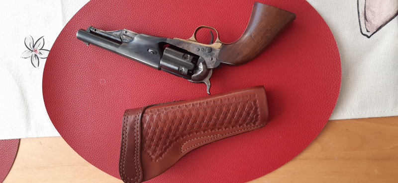 Biete hier einen sehr schönen - ungeschossenen - Vorderlader Revolver Mod 1860 Army , Cal. 44 BP (Ital. Replica) - Brunierung fast vollständig (nur an Laufmündung leicht abgerieben ) Rechter holzgriffschale hat ein paar leichte Dellen , aber kaum sichtbar.