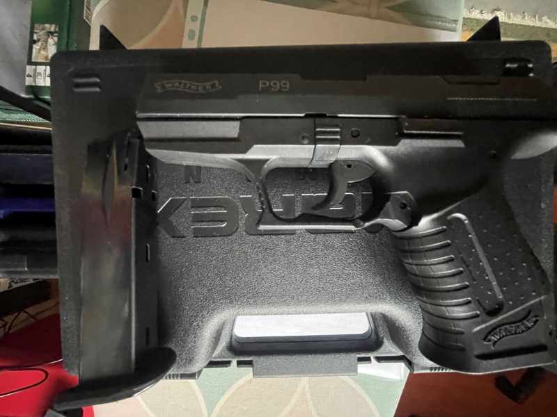 Zum Verkauf kommt hier eine Walther P99 im Kaliber 9mm P.A.K.