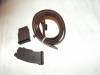 Kurzzugriemen aus rot gegerbem feinem Leder, 2 Magazine groß und klein.