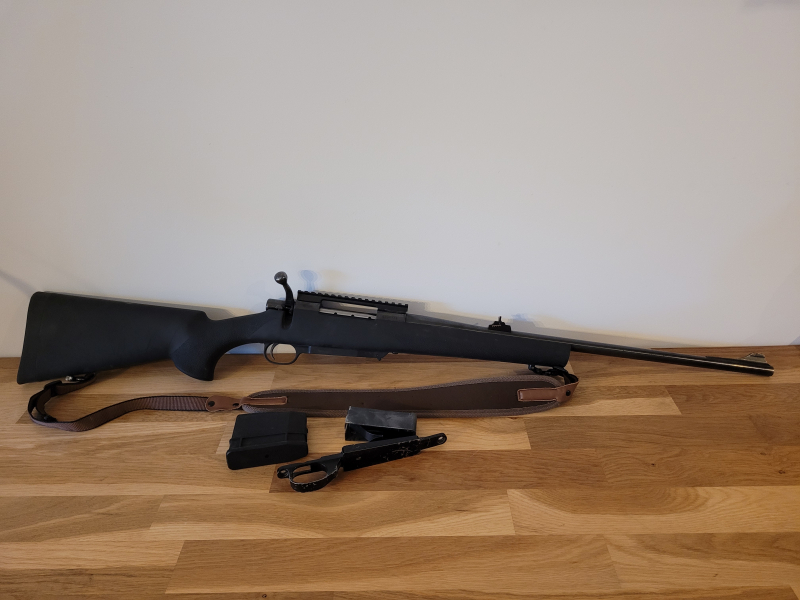 Die RWS Modell 89, ist baugleich einer HOWA 1500 im Kaliber 30-06. Sie ist eine sehr zuverlässige und robuste Waffe. Kunststoffschaft und 5-Schuss-Kunststoff-Einsteckmagazin stammen aus dem Baukastensystem der Howa. Das originale Klappdeckelmagazin wird mitgegeben.