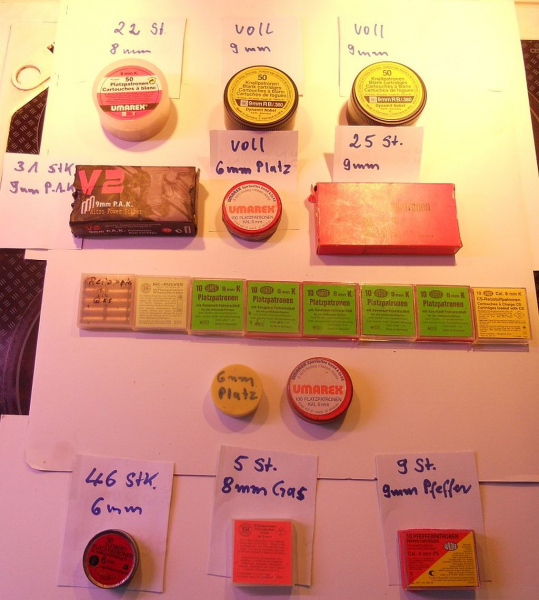 Insgesamt 568 Schuss verschiedener Platz und Gaspatronen.(Wenn ich mich nicht verzählt habe).