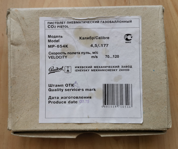 ich verkaufe eine gebrauchte Co2 Pistole, Typ Makarov MP654K, Kal. 4,5mm von Baikal in der Originalverpackung.