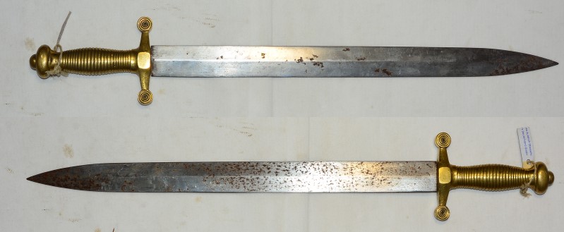 Französisches Infanterieschwert Modell 1851, sogenannte Glaive, Klingenlänge 44,3 cm, Gesamtlänge 57,1 cm, schwerer Messinggriff, ohne Scheide