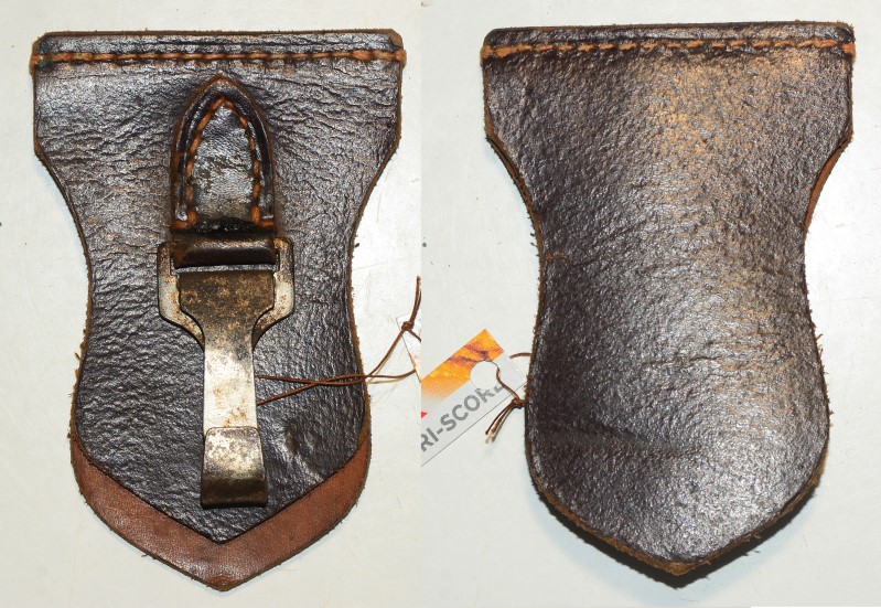 Gehänge bzw. Koppelschlaufe für Dolch oder Säbel, französische Armee 2. Weltkrieg, hellbraunes Leder mit flachem Karabinerhaken